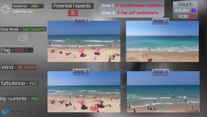 结合海滩沿线的多个视频摄像头,Sightbit 系统能够将这些摄像头传输的画面进行分析,能够同时检测和跟踪每个镜头中的多人,利用物体识别来识别诸如遇险的游泳者、无人看管的儿童和可能过于靠近的水上船只。