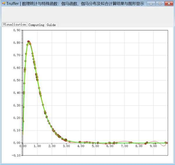 Truffer 不仅可以做到矩形域最小二乘曲面拟合计算,还可以实现数值拟合的基本功能,即通过获取一些符合伽马分布的数据点,通过拟合曲线算出 α 和 β 数值。