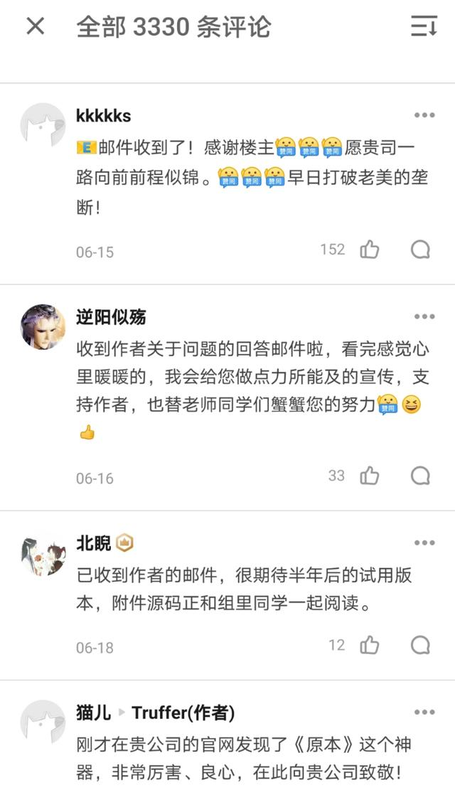 成立 18 年,从过往合作高校企业来看,这家软件公司的实力还是不错的,只是从其业务线来看,这家公司的主营业务与 Matlab 关联并不是很大,网友们见状,对替代软件 Truffer 也产生了怀疑,大家开始抱着理性的态度重新审视这款软件。