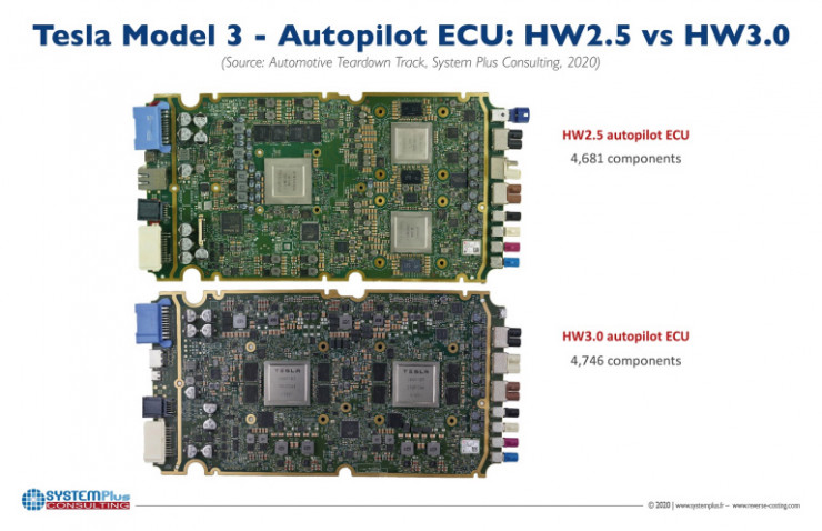 Fraux 表示,同样的体积下,特斯拉在 HW 3.0 里塞进了更多零部件(4746 个,比 HW 2.5 多了 65 个零部件)。
