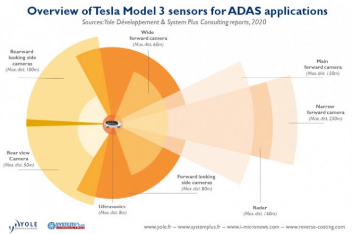 不过,System Plus 公司 CEO Romain Fraux 却一针见血的指出,特斯拉在设计 Model 3 之初主要目标其实是缩减 ADAS 系统的成本,以便拉低该车型的售价。
