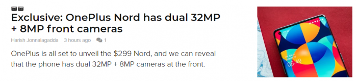 作为时隔多年后再次重启的非旗舰产品线,一加Z(Nord)一直受到很多关注。此前,一直有消息称,一加Z(Nord)将采用中置打孔设计,而今天,根据外媒Androidcentral报道,一加Z(Nord)将采用双前置摄像头的设计而非此前泄露的中置打孔。