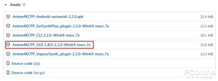 首先,到Anime4KCPP的GitHub页面下载它。注意,Anime4KCPP的页面提供了几个不同更多版本,点到Release页面中,选择“GUI”版本下载。只有这个版本才带有图形界面,更加易用。