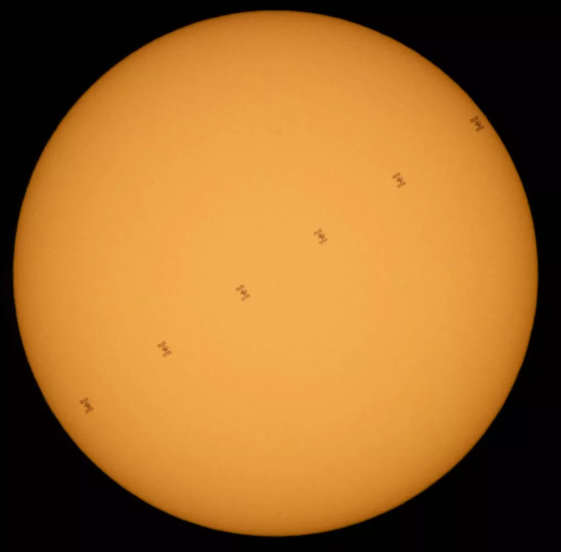 据外媒CNET报道,近日美国宇航局(NASA)摄影师Joel Kowsky成功抓拍到国际空间站“穿越”太阳的壮观景象。NASA发布了一张由六张照片组成的合成图像,显示了国际空间站在6月24日 "以大约每秒5英里的速度 "穿越太阳时的剪影。NASA还发布了一段由10张照片组成的短视频。