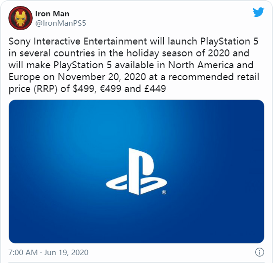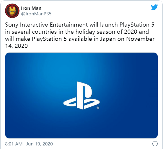 最后,@IronManPS5 预计日本市场会较其它地区更早一周地迎来 PlayStation 5 的销售。