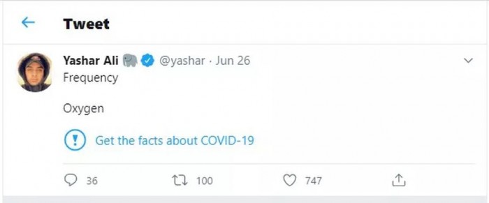 任何被认为可能存在误导性的推文都会被添加这个标签。但决定哪些推文被标记的系统显然有些过于一刀切。部分包含单词“oxygen”(氧气)和“frequency”(频率)的推文都会触发该事实审查标签,因此有部分阴谋论认为 5G 的“频率”会吸走大气层中的“氧气”。
