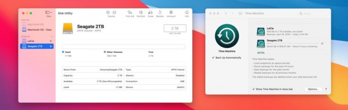 与此相关的是,macOS Big Sur现在可以将 Time Machine 备份到APFS磁盘。在 macOS Catalina 和以前版本的操作系统中,Time Machine 只与 HFS+ 磁盘兼容,苹果在一篇支持文章中解释了这一点。