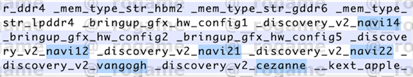 macOS代码里也出现了Cezann的名字,而且对应ID字符串为“CZN_Renoir”,也就是和现在的Renoir关联密切,更进一步印证了二者的密切性,GPU几乎已经可以完全确认还是Vega。