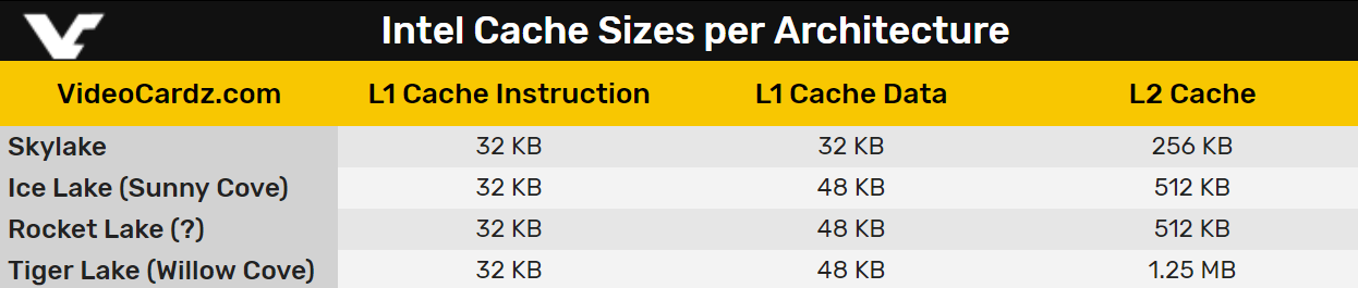 跑分就不看了,样品的意义不大,有趣的是缓存容量:一级指令缓存32KB,一级数据缓存48KB,二级缓存每核心512KB,正好和Sunny Cove完全相同,而最新的Willow Cove架构是1.25MB。