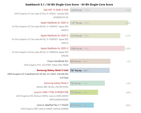 那么,这种五核心五线程处理器的实际性能到底如何?NoteBookCheck近日测试了一款配备i5-L16G7的三星Galaxy Book S,结果……挺纠结的。