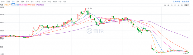 截至美股6月26日当天收盘,瑞幸咖啡股价报收于1.38美元/股,跌幅为54%,市值跌至3.47亿美元。讽刺的是,就在今年1月中旬,瑞幸咖啡股价还创下了上市以来的新高—51.38美元。