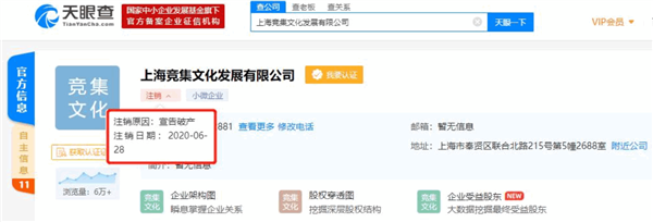 不过日前,女车主薛春燕所关联的上海竞集文化发展有限公司已完成注销,宣告正式破产。资料显示,公司成立于2017年,注册资本10万元,法定代表人为黄芝香。