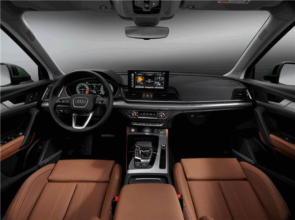 内饰方面就没有外观上那么惊艳,新款Q5的内饰和现款车型变化不大,并没有采用当前奥迪最新的虚拟座舱设计,车内搭载全液晶仪表盘和悬浮式中控屏,抬头显示功能仍支持选装。
