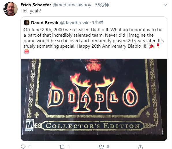 作为暴雪金字招牌游戏,《暗黑破坏神2》是一款RPG游戏爱好者无法忘怀的游戏,6月29日的今天它刚刚度过了20周年纪念日,早已离开暴雪的两位创始人David Brevik、Erich Schaefer刚刚互相庆贺了一把。