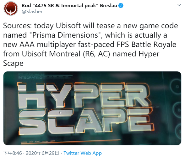 如果近日的爆料靠谱,那育碧最快有望在下周开启《Hyper Scape》的 Beta 测试,并于 7 月 12 日与公中见面。