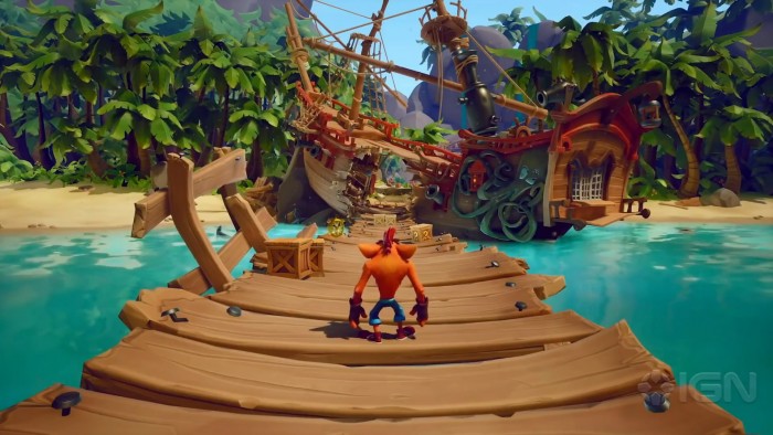 近日外媒IGN公布了《古惑狼4:时机已到》新演示视频,展示了全新的海盗关卡,并介绍了一些熟悉的回归元素。一起来欣赏下视频吧!《古惑狼4》故事描述古惑狼克拉修(Crash)正在他的年代(1998 年)中放松并探索岛屿时,在一个洞穴里发现了一个神秘的面具Lani-Loli。