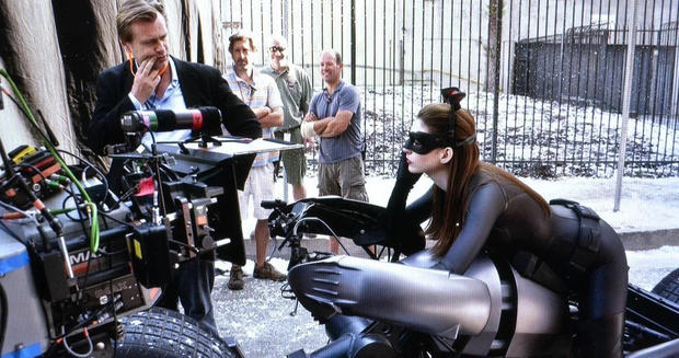 诺兰和海瑟薇在《黑暗骑士崛起》片场