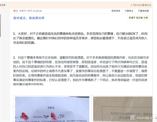 以下为该事件造谣贴: