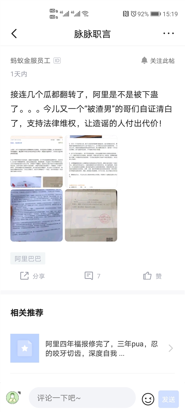 近日,阿里接连遭遇谣言攻击。继编造“蒋凡事件”谣言的自媒体“小白天下”、“阿里员工招小三进公司”谣言的编造者“李国福”先后公开道歉之后,又有一起“大瓜”出现了反转。据脉脉上蚂蚁金服员工爆料,此前编造阿里蚂蚁金服P9员工pua控制骗炮的造谣者,于近日被抓并道歉,承认事件是因口角恩怨打击报复编造,被造谣的当事人也在阿里内网发布了澄清。