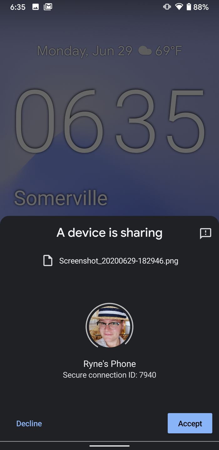 据悉,用户不可以使用Nearby Share给陌生人的设备发送文件。要想使用这个功能,用户必须要提前设置,并且将自己的手机调到“可见”状态(可通过快速设置栏轻松开启),之后他们才能收到内容,而且在接受内容之前,用户还需要手动接受对方发来的内容。