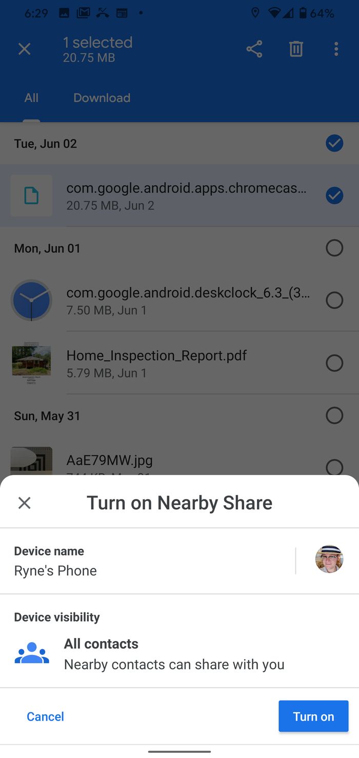 关于Nearby Share,我们可以将其视为是Android版本的AirDrop,后者是苹果设备之间快速分享文件的功能。在有了Nearby Share之后,附近的Android设备之间可以快速无线传输文件,用户可以使用这个功能分享图片、视频以及链接和推文等内容。