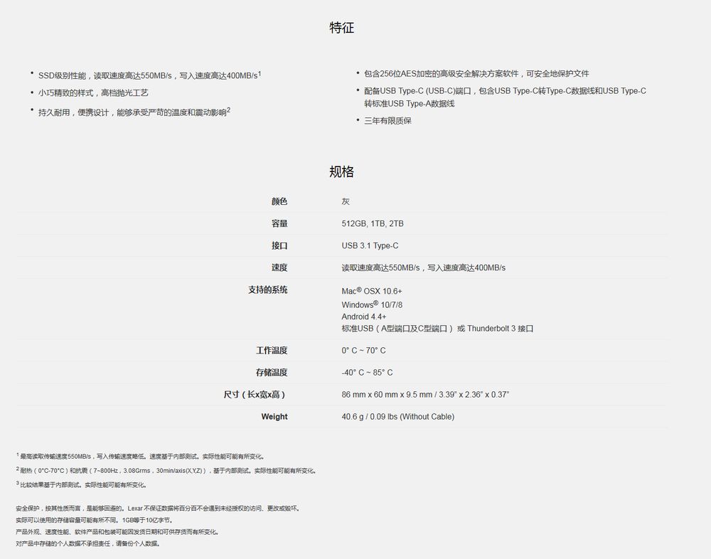 Lexar SL200便携式SSD于本月上市,制造商建议零售价为89.99美元(512 GB)和159.99美元(1TB)。2TB版本的售价目前暂未公布。