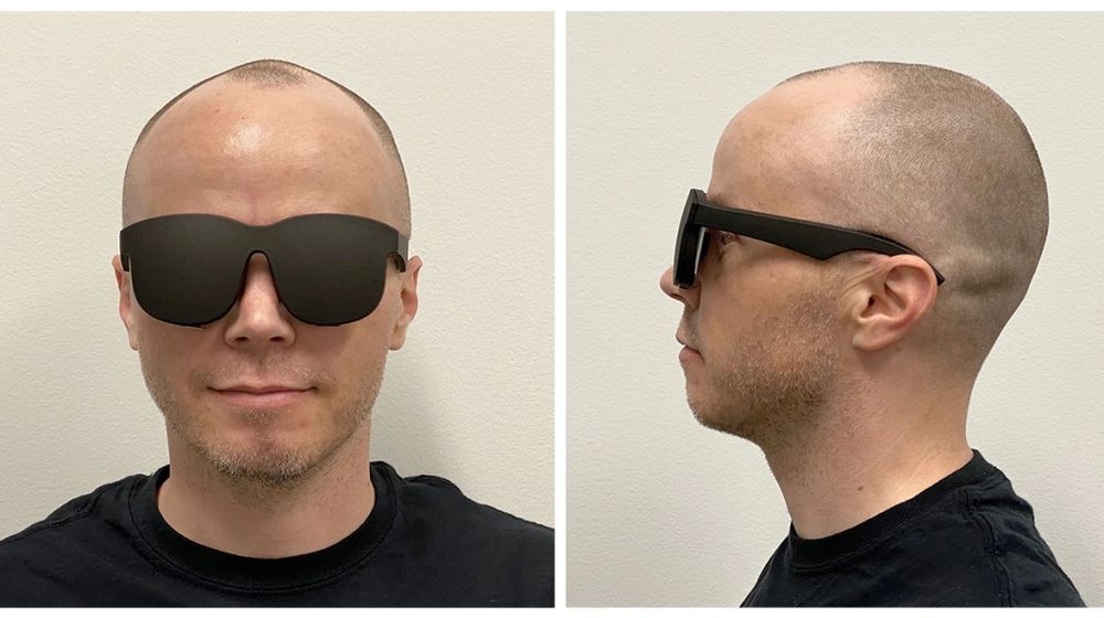 Facebook 近日展示了尚处于概念验证阶段的虚拟现实(VR)眼镜。有别于市场上的大多数臃肿的 VR 头显设备,这款眼镜并不会遮住你的半张脸,佩戴起来就像是一副太阳眼镜,可以舒适的佩戴在耳朵上。它的镜片非常纤薄,屏幕厚度不到 9 毫米,Facebook 声称视场角能与“当前主流消费类 VR 头显媲美”。