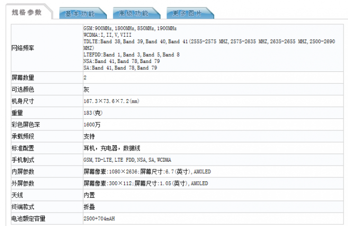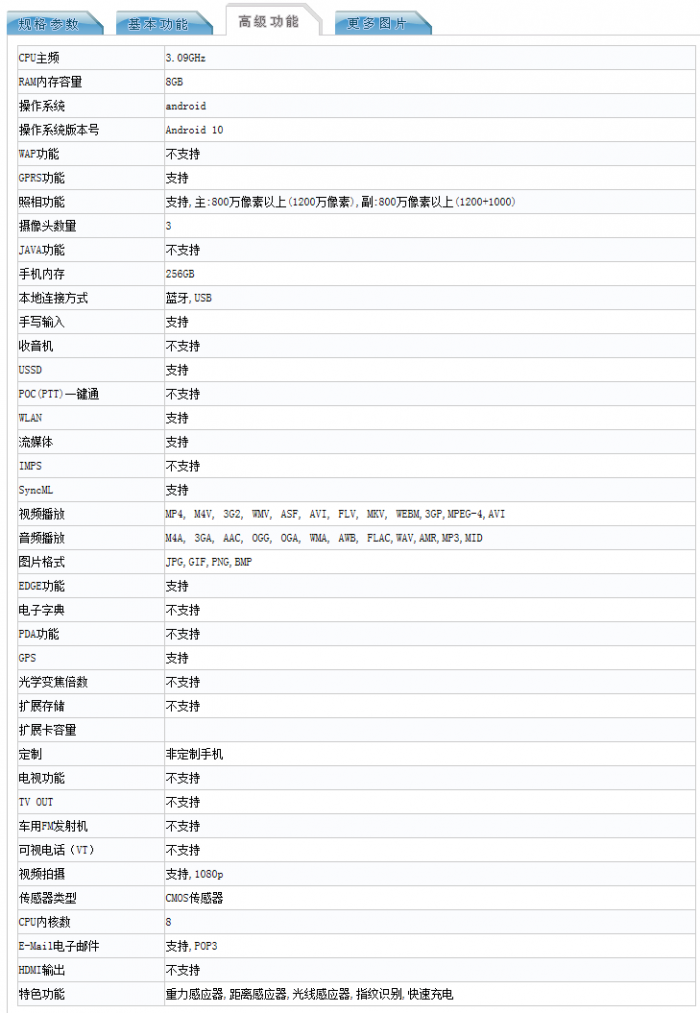 该机支持 NSA:Band 41,Band 78,Band 79 和 SA:Band 41,Band 78,Band 79 这两种5G频段,电池为2500+704mAh。该机装备了 8GB 的内存,3.09 GHz 的八核处理器(推测应该是骁龙865+)。主摄像头为1200万像素,此外还有1200万+1000万像素摄像头。