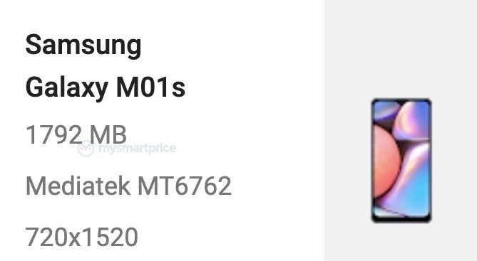 谷歌 Play 控制台的清单显示,三星也为 Galaxy M01s 选用了联发科 Helio P22(MT6762)芯片组,辅以 2GB RAM 运存(据说还有 3GB RAM 的版本)。