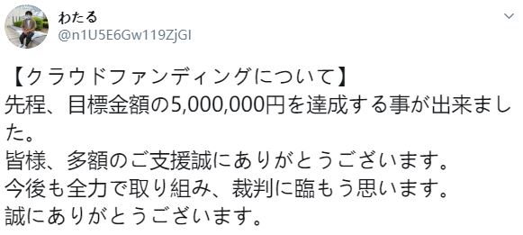 这项众筹于6月22日开始,计划筹到500万日元诉讼费用,开众筹当天目标已经达成了一半以上。而这项众筹也在昨日达成目标,将在今年9月提起诉讼,要求“国家赔偿请求诉讼”,赔偿金额约154万日元,约合人民币10.22万元。