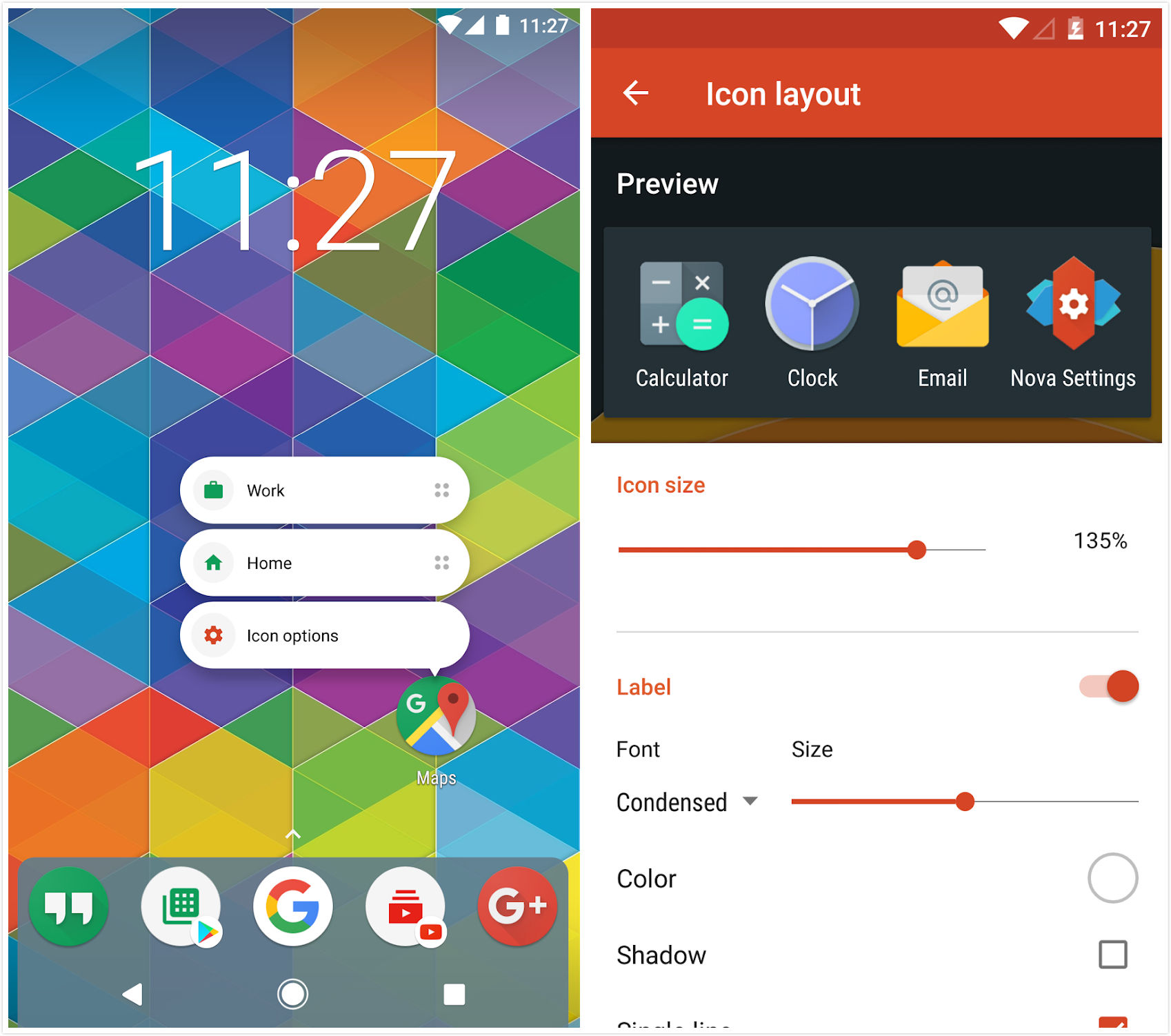 桌面是手机系统的门面,也是“搞机”的第一步。从最基本的来说,第三方桌面可以支持更改图标包,让你的手机桌面“焕然一新”。不少启动器还提供独特的应用排列方式,极简风、立体风、科幻风。往复杂了说,第三方桌面几乎可以对手机桌面的任何细节进行自定义,比如手势操作、文件夹外观、通知显示、小部件显示等。
