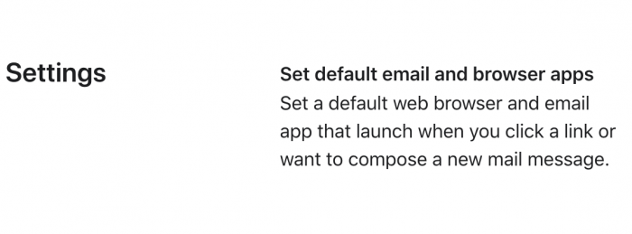 在 iOS 14 中苹果放宽了这个限制,用户可以点击链接修改默认浏览器、点击邮件修改默认的邮件应用。很多人对此还不太满意,为什么只有这两个可以改?我还想要更多。