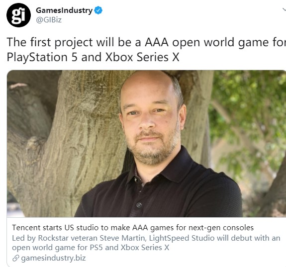 腾讯在洛杉矶开设了一家新工作室,正在为PS5和XSX开发3A游戏,这家工作室隶属于光子工作室群(成立于2008年),是腾讯旗下四家工作室之一。工作室由R星老员工Steve Martin(曾在《GTA5》和《荒野大镖客2:救赎》担任过重要职务)领军,团队成员包括前R星、Respawn、2K和Insomniac员工。