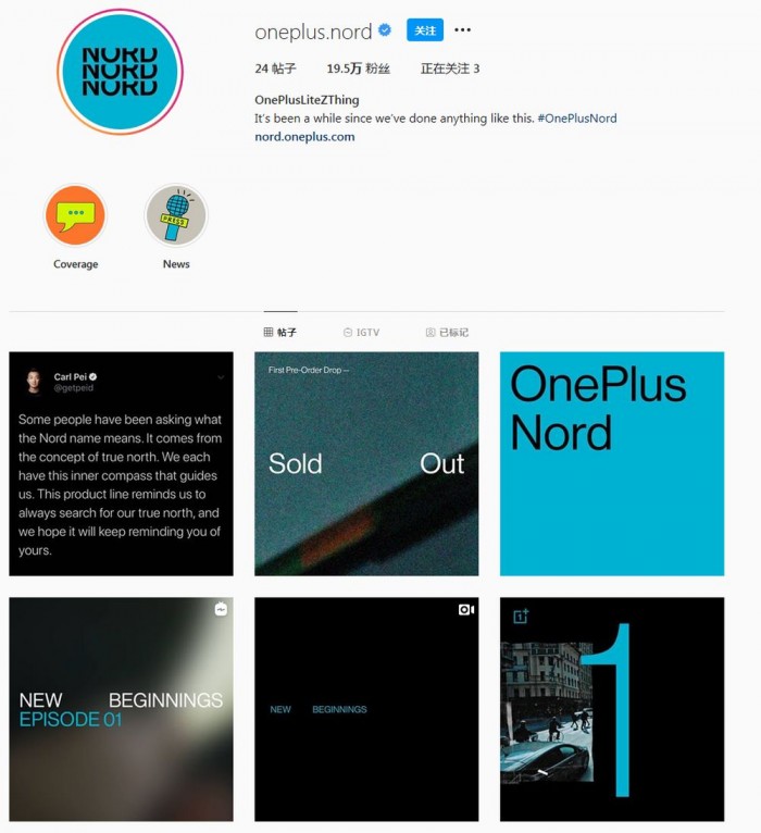一加Nord新机预估将会在7月10日上线发布。援引外媒 CNET 报道,目前一加已经创建了两个 Instagram 账号,其中一个叫做“Lite Z Thing”,还有一个叫做“Nord”。而且一加已经在 YouTube 上放出了一段该系列的宣传视频,主题是“新征程”(New Beginning)。