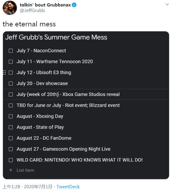 Jeff Grubb 指出,7 月的新展示将主要围绕微软第一方 Xbox 游戏工作室发行的作品展开,其中包括玩家们期待已久的《光环:无限》、以及 The Initiative Studios 的新作。
