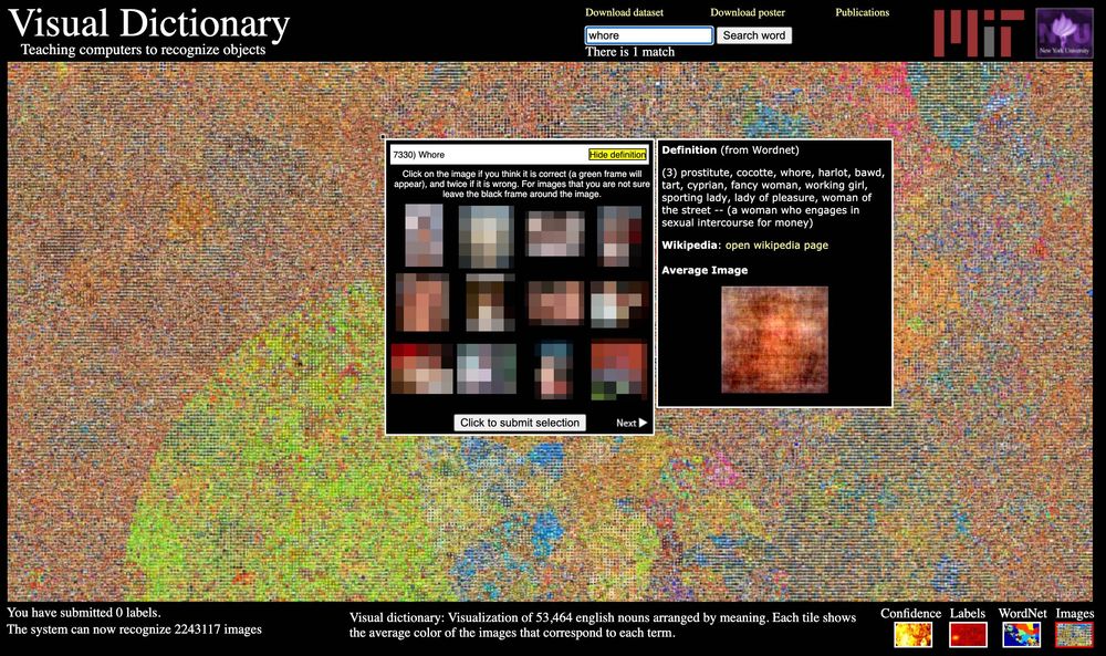 不过由于数据采集的时候并没有经过严苛的甄选,导致该系统会给女性贴上“妓女”或者“母狗”的标签,给黑人、黄种人贴上带有贬义色彩的标签。此外该数据库中还包含带有 C 字母的女性生殖器特写图片。