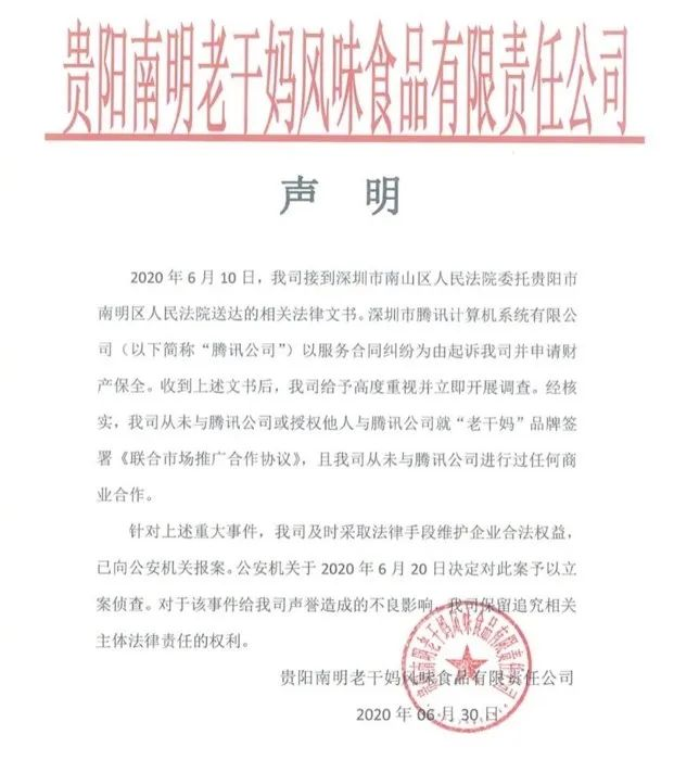 更更更魔幻的是,腾讯一边找法院起诉,老干妈一边在找公安报警。
