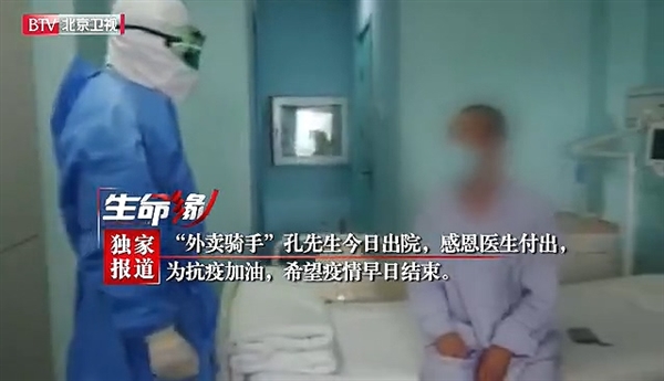 据报道,确诊的外卖小哥孔先生于6月22日住院,经过10天的治疗,现已完全康复,核酸连续两次转阴,符合出院条件。