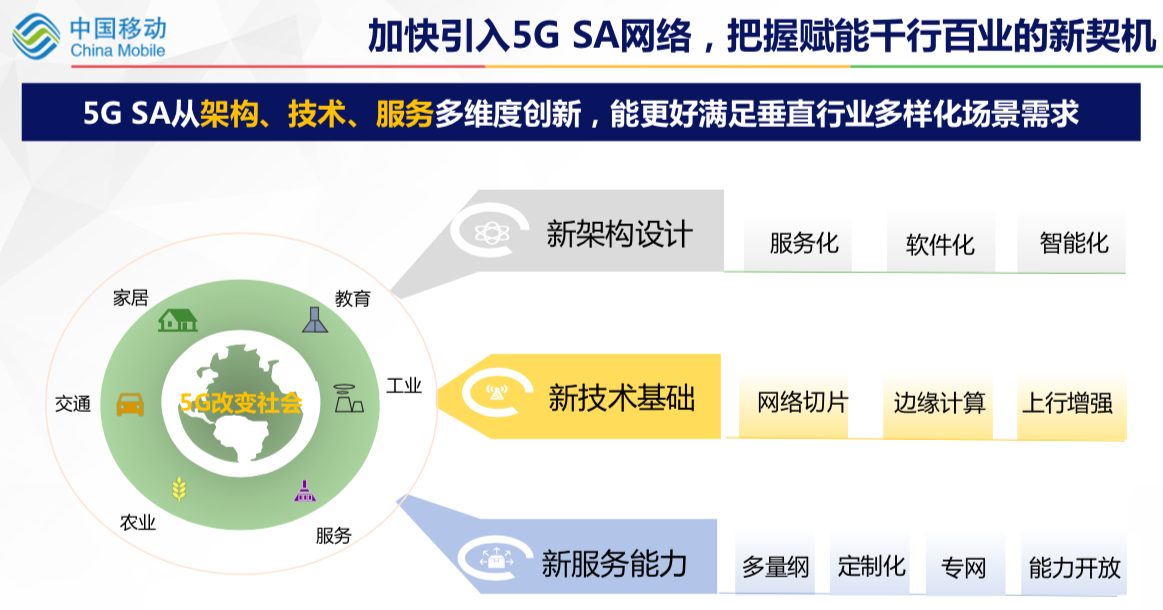 黄宇红介绍,面对上述机会与挑战,中国移动全方位推进SA成熟与商用,是5G SA发展的先锋和主力军。