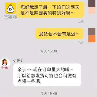 老干妈官方旗舰店客服更是表示,订单量大可能会延迟发货,具体收货时间不能保证,后台咨询量大到都回复不过来了。