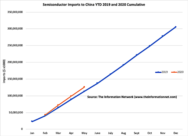 尽管在2019年受到贸易限制的影响,但中国的半导体进口量增速不减,2020年新冠疫情下,中国半导体进口量的增长速度甚至更快。