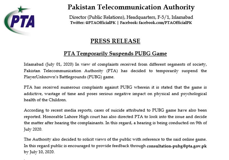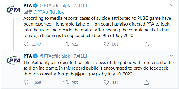 根据当地媒体报道,本次封禁可能和近期数起与该游戏的自杀案件相关。拉合尔高等法院指示PTA在听取投诉后调查并决定此事。正式听证会将于7月9日举行,PTA敦促公众在此之前通过电子邮件提供反馈。
