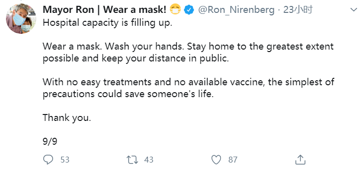“现在......COVID-19对我们社区的威胁比以往更高,”休斯顿市长西尔维斯特·特纳本周表示。“在我们的家庭,朋友和社区之间有一个严重和不受控制的传播。而我们需要放慢它的速度,这样才不会让我们的医疗服务系统不堪重负。”特纳称,休斯敦有两家医院“几乎达到了最大容量”,一些医院不得不将病人送到其他机构。