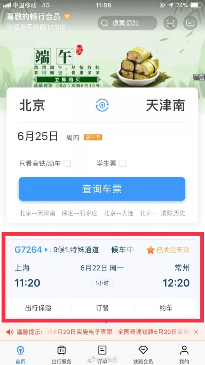 本次12306首页改版,首页可以查看个人行程,不管是您自己买的票,还是别人给您买的票,您都能在首页看到。