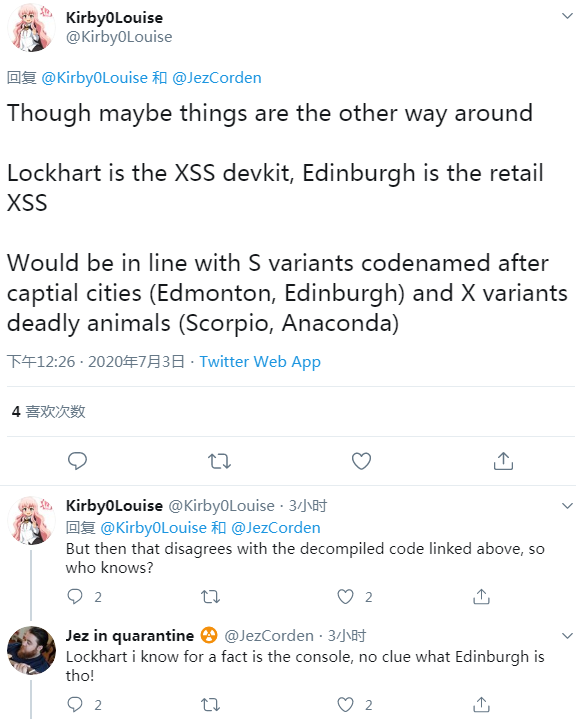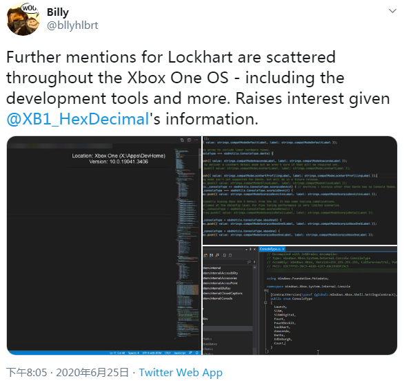 不过 Twitter 网友 @Kirby0Louise 指出,Lockhart 是 Xbox Series S 的开发套件代号、而 Edinburgh(苏格兰首府爱丁堡市)则是零售版本的代号。