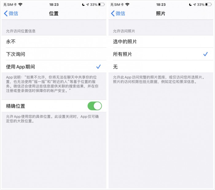在获取位置时,用户也能选择获取大概位置(用于新闻、天气),还是获取精确位置(用于打车、导航)。