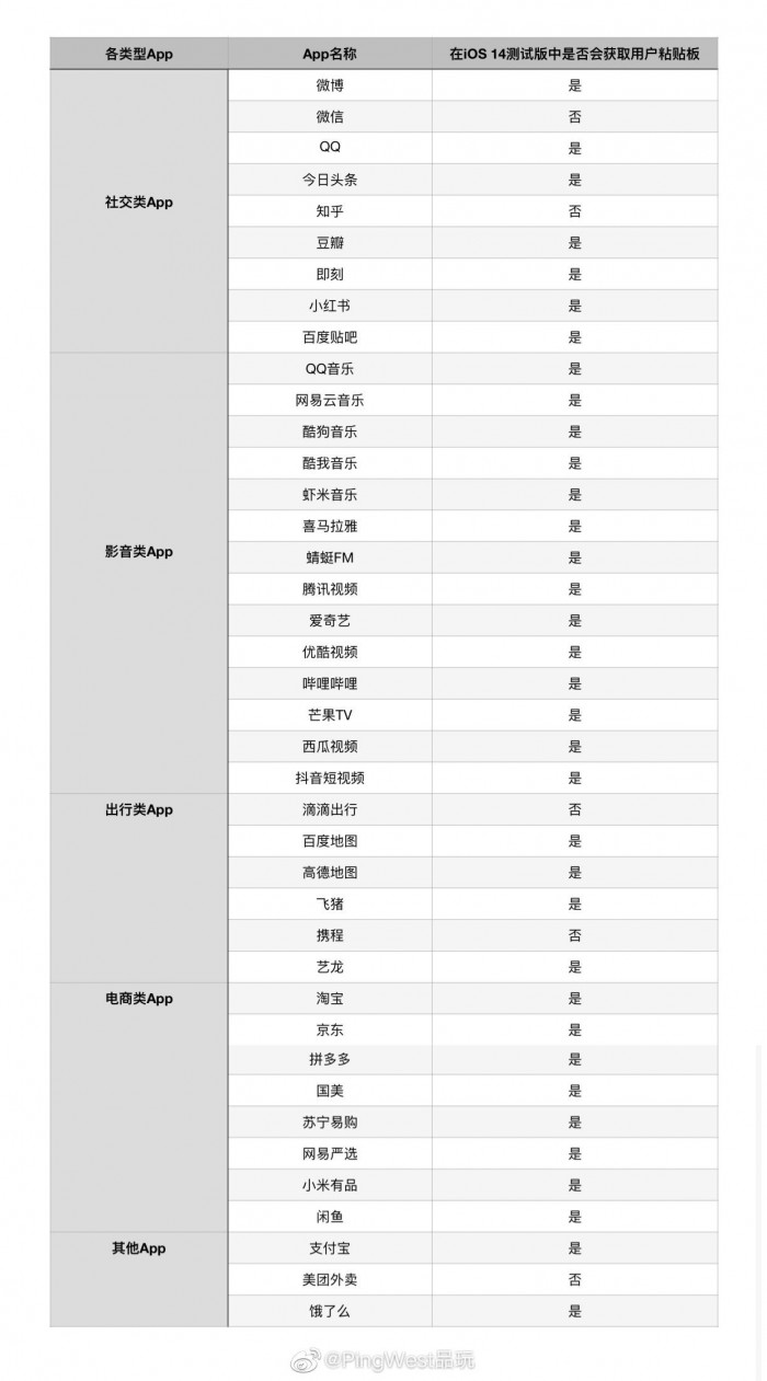 最近 iOS 14 的一个新功能引起了人们的讨论,当应用从剪贴板中获取内容时,会在手机顶部显示内容来源。在 PingWest 品玩进行的一项测试中,国内 40 款主流应用只有 5 款不会获取用户剪贴板。这件事就和之前的 vivo 升降式摄像头、MIUI 12 照明弹一样,将应用暗中进行的一些行为暴露出来,随即引发了一系列关于隐私的讨论。