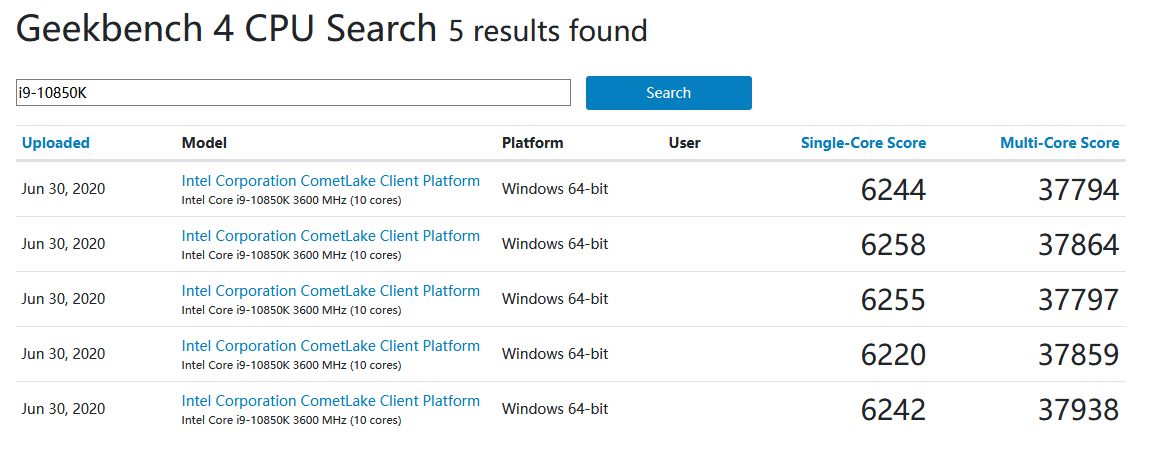 最近这几年AMD与Intel的竞争越来越激烈,AMD在CPU方面的进步明显,给Intel带来非常大的压力。AMD还在最近发布了新的Matisse Refresh系列CPU,使用了新的XT后缀作为标识,比原型号的首发价格稍便宜,这让Intel的CPU销售更加困难,于是Intel似乎也要推出新的型号来与AMD竞争,现在已经有一款型号为Core i9-10850K的CPU出现在geekbench数据库中。