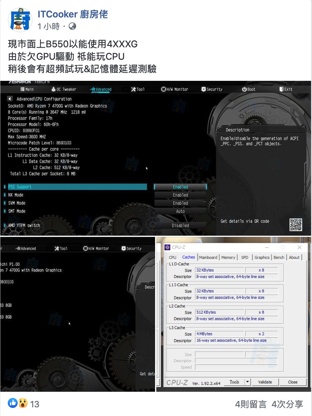 虽然较早前网上资料指出 Ryzen 4700G 内建 7nm 工艺的 Vega 8 图形核心,但本次玩家在网络上公布的资料并没有分享效能和GPU部分。