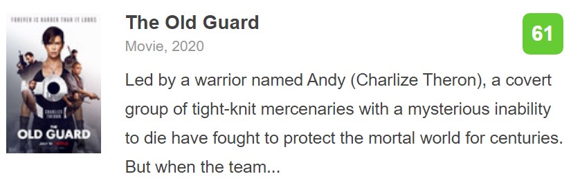《永生守卫》由漫画改编,讲述一个叫Andy(查理兹·塞隆饰)的女人带领一支拥有不死能力的神秘雇佣兵团,数百年来都在保卫平凡人世界的安全秩序。可是在一次受雇执行紧急任务中,他们意外暴露了他们的神秘超能力。于是就有人打起他们的主意,意图复制他们的能力,而且为达目的不择手段。在Andy的带领下,团队能否通过层层危机化险为夷?